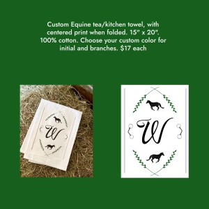 Custom watercolor design with your choice of color for an initial or monogram onto a flour sack towel. 27″x28″ 100% cotton. This design can also be placed on canvas bags. $18.00 each.