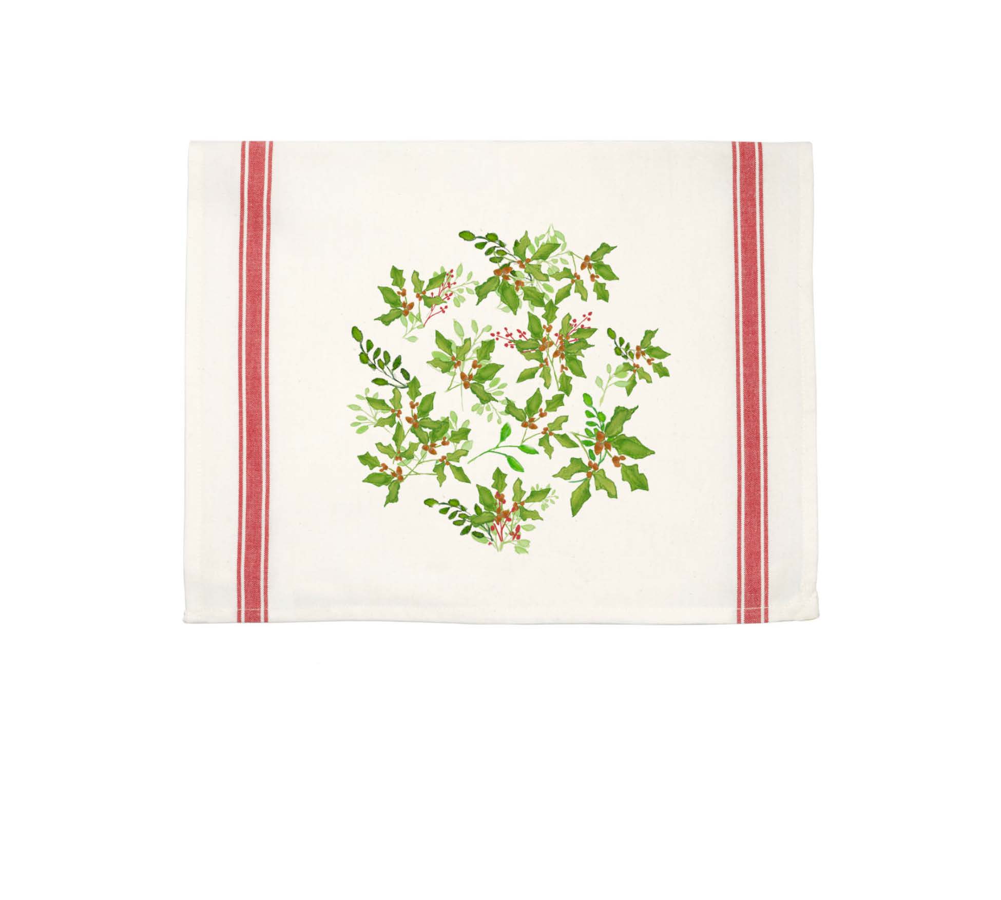 Original watercolor holly design applied to a vintage farmhouse, red striped towel. 100% cotton. 18″ x 28″. 2 for $34.00. The quality is phenomenal – very thick cotton. Printed in Nashville. Support two local businesses! Two options for design shown below.